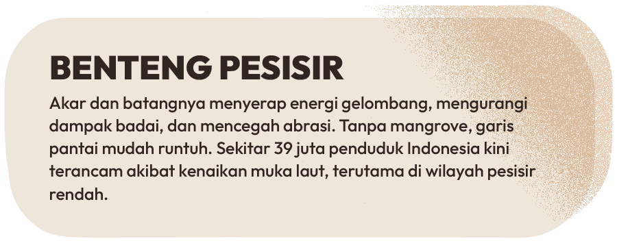 Padahal, mangrove adalah pelindung alami yang seharusnya menjaga daratan dari amukan laut.